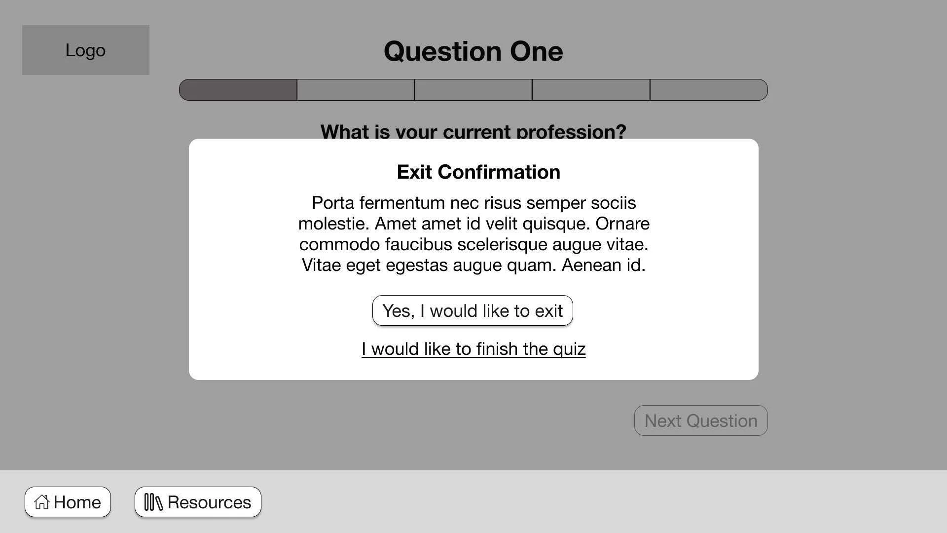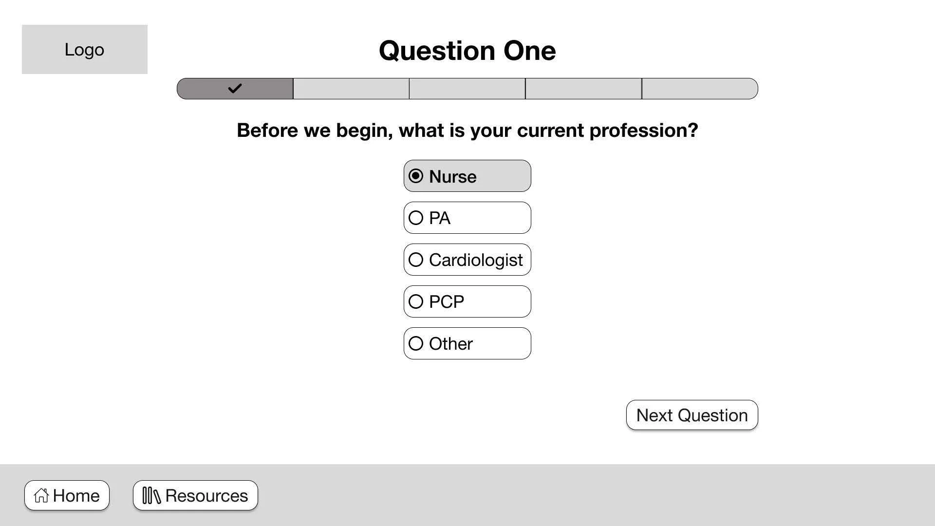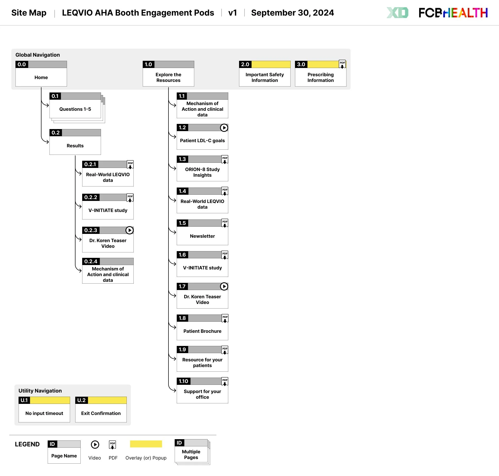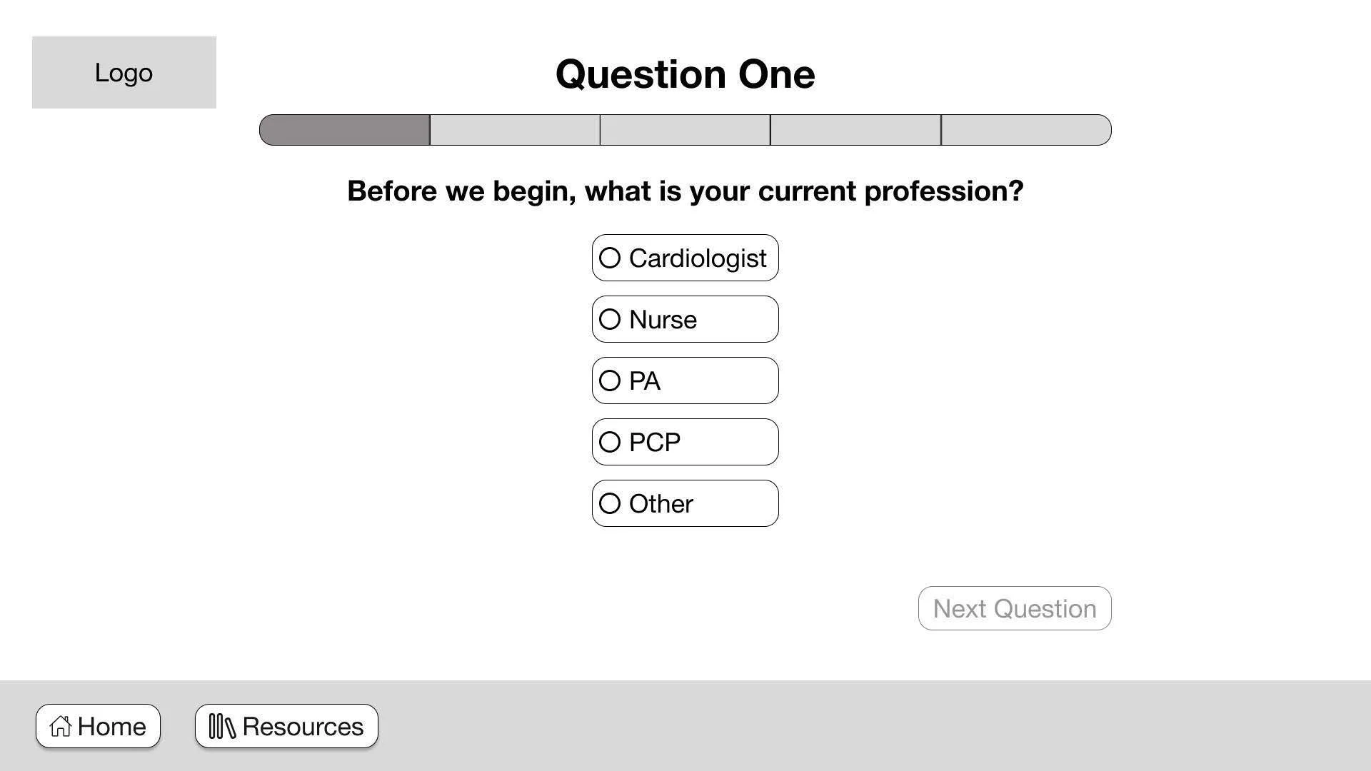 In addition to our initial idea of a brief quiz for HCP, the client requested to add a resource library that houses study insights, interactive visual aids, patient brochures, and videos. This last minute request created friction within the internal team because it added more choices for users and convoluted our original user flow. The client settled on making this resource library a secondary objective, one that should be accessed with a rep on standby.