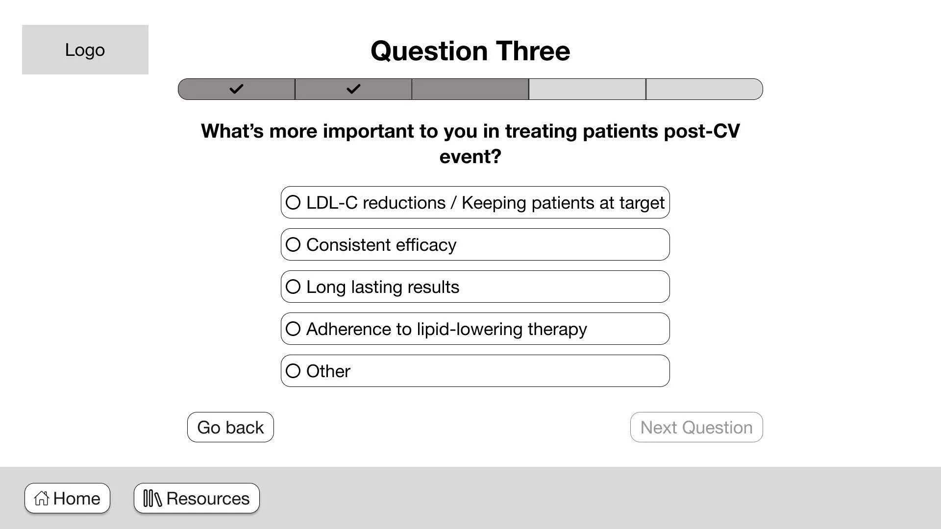 After the AHA Congress, we collected data from the user entries and noticed that there was a major drop off in completion after question two. Users were not completing the remaining questions, therefore we must re-evaluate the number of questions and their priority. I was very surprised to this finding because a five question quiz is relatively short and simple but that is not the case for HCPs at a busy convention surrounded by marketers constantly trying to grab their attention.