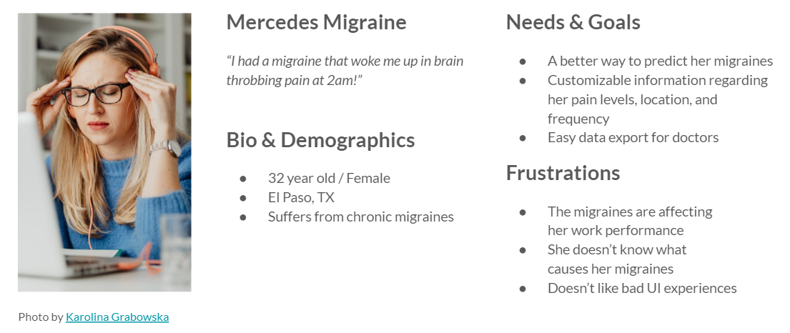 Mercedes needs an efficient method of customizing, accessing, and sharing her migraine data so she can focus on managing her team and her migraine patterns.