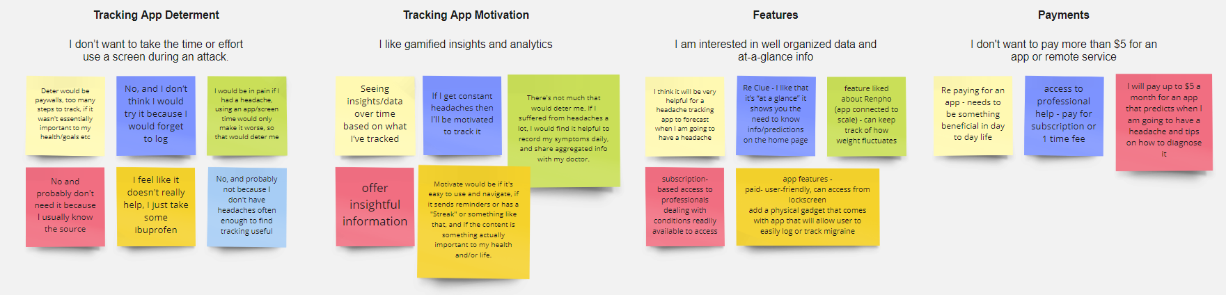 During the initial phase of this project, my team sent out survey questionnaires to individuals who had experienced headaches or migraines in the past. Our goal is to have a starting point and empathize with people who suffer from headaches or migraines. In the end we collected 18 responses in total and from those responses, we reached out to three individuals for a 1 on 1 zoom interview.