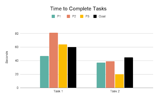 3 out of 3 users achieved the goal of completing both tasks within 60 seconds and 45 seconds respectively.